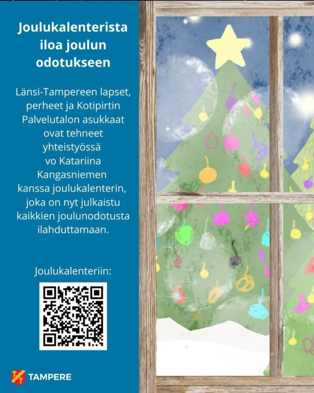 Yhteisen Turvaverkon Tesomalla kokoontuvan iltaperhekahvilan perheet ovat syksyn aikana askarrelleet Läntisen Tampereen yhteiseen joulukalenteriin yhden luukun joulukuun 15. päivälle. Kalenterin on…