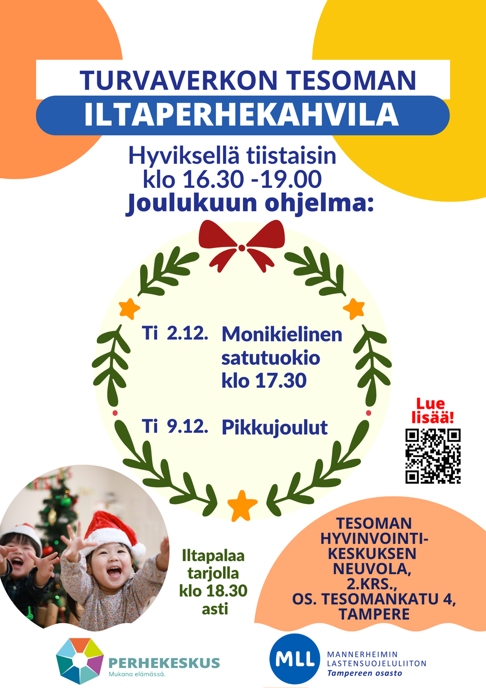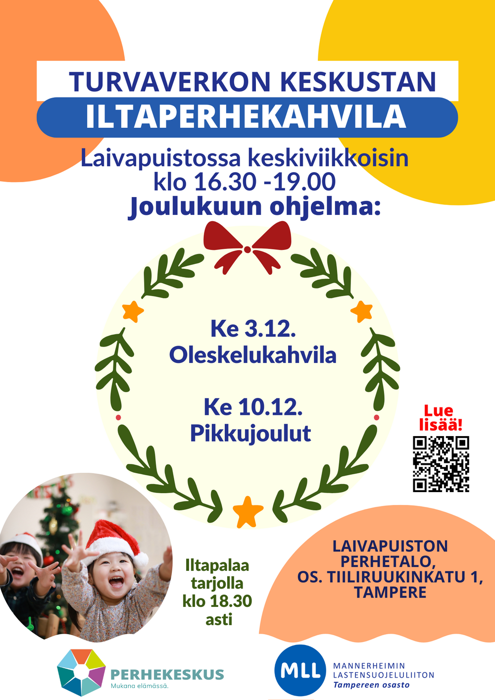 Iltaperhekahvilaan voi tulla oman aikataulun mukaan. Ilmoittautumista ei tarvita.