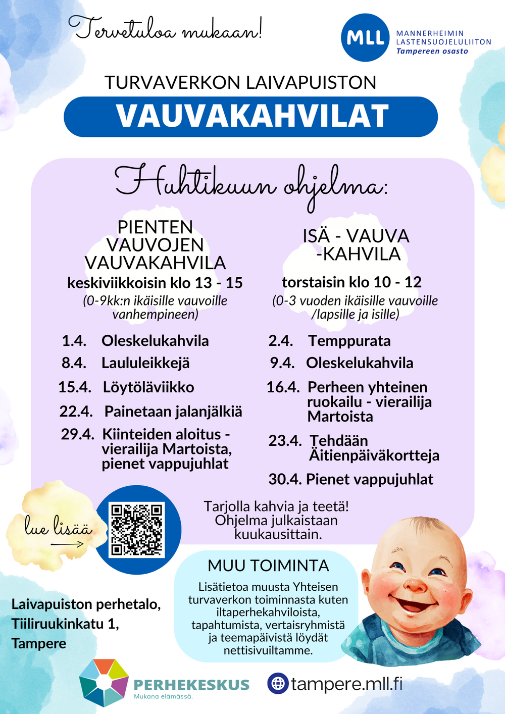 Tarkemmat tiedot ja vauvakahviloiden huhtikuun ohjelmat löydät alta.